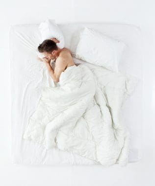 Though it’s not the most popular position—only 8% of people sleep on their backs—it’s still the best. By far the healthiest option for most people, sleeping on your back allows your head, neck, and spine to rest in a neutral position. This means that there’s no extra pressure on those areas, so you’re less likely to experience pain. Sleeping facing the ceiling also ideal for warding off acid reflux. Just be sure to use a pillow that elevates and supports your head enough—you want your stomach to be below your esophagus to prevent food or acid from coming up your digestive tract. However, snoozing on your back can cause the tongue to block the breathing tube, making it a dangerous position for those who suffer from sleep apnea (a condition that causes periods of breathlessness). This position can also make snoring more severe.