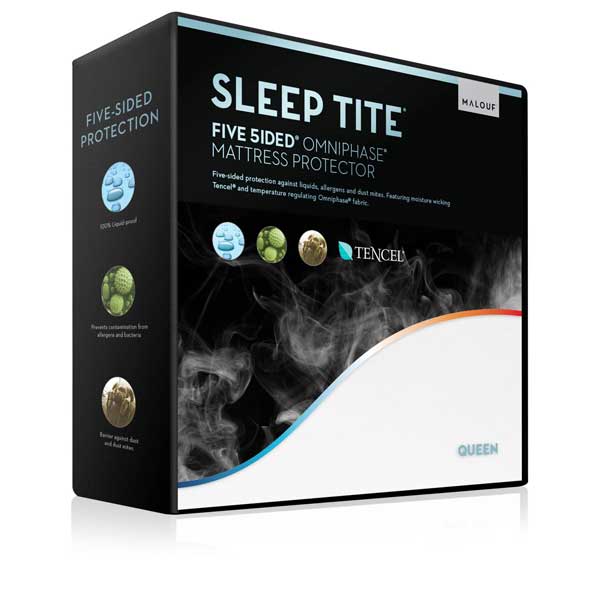 The Five 5ided® Mattress Protector with Tencel™ + Omniphase® is the most advanced mattress protector on the market with three incorporated technologies—Tencel™, Omniphase®, and the H2Pro® membrane. Omniphase® phase change material promotes a comfortable sleeping temperature in any climate; Tencel™ fiber wicks away moisture from the body and the laboratory-certified H2Pro® liquid-proof membrane creates a quiet, and breathable barrier against allergens and dust mites. The combined benefits of these technologies means you will sleep comfortably and dry with five sides of protection for your mattress. Pillow protectors are also available to create a healthy sleeping environment.